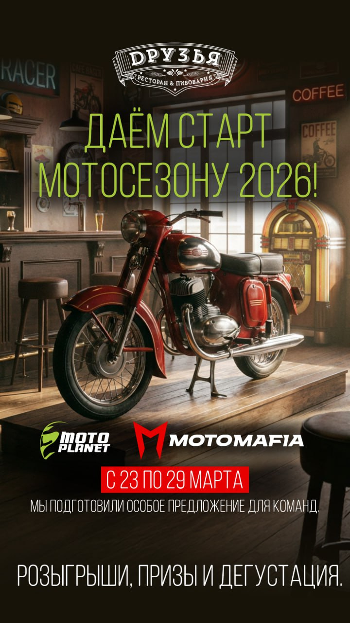 Ресторан-пивоварня ДРУЗЬЯ , совместно с легендарной Мотопланетой даёт старт мотосезону 2026!